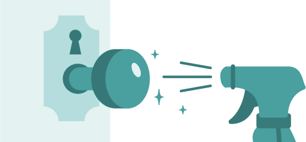 Hospital-grade cleaning supplies are used to provide a deep disinfecting cleaning with special focus paid to high-touch areas (counters, door knobs, appliances).